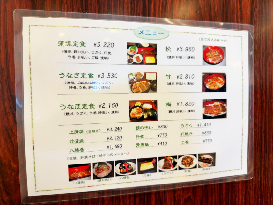 飲み物はこんな感じ。なんと瓶ビールが550円!これまで鰻屋で見てきた瓶ビールの値段としては最も安いかも