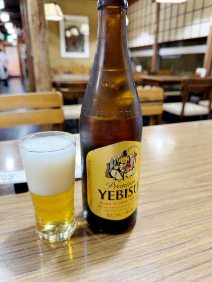 とりあえず中瓶(700円)で一服。はやる気持ちを抑えられず慌ててついだら泡だらけに……