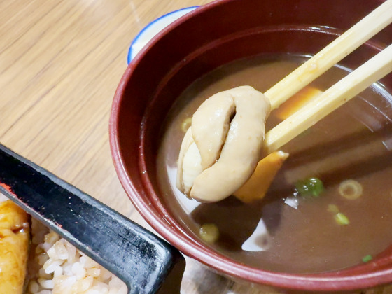 肝吸いは赤だし。大き目の肝がうれしい。吸い物も良いですが赤だしだとより臭みが緩和されて良いかも