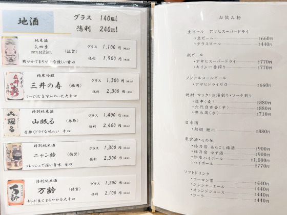 瓶ビールは770円とけっこう安い。地酒も種類が豊富