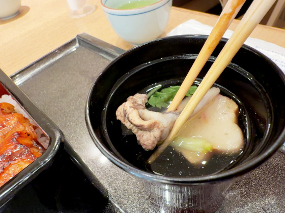 セットで付いてくる肝吸い。肝はぷにゅぷにゅ食感で臭みなし。二切れ入っています