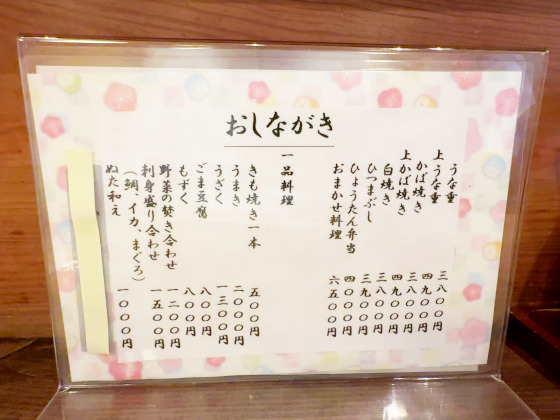 メニューはこんな感じでシンプル。かば焼きにはご飯が付いていて、おかわり自由のようでした。