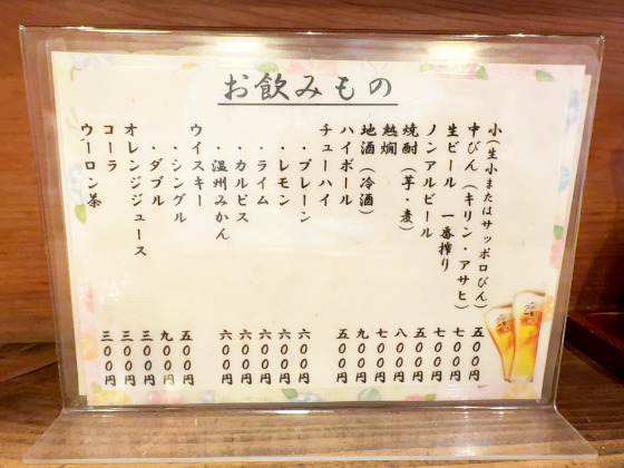 飲み物もシンプル。ビール中びんは700円。