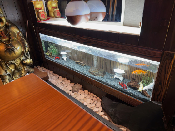 テーブルの横にも水槽があり「ここの活きた鰻を見ながらうな重を食べるのか……」と心配になりましたが、泳いでいるのは観賞用の金魚。ちょっと安心しました
