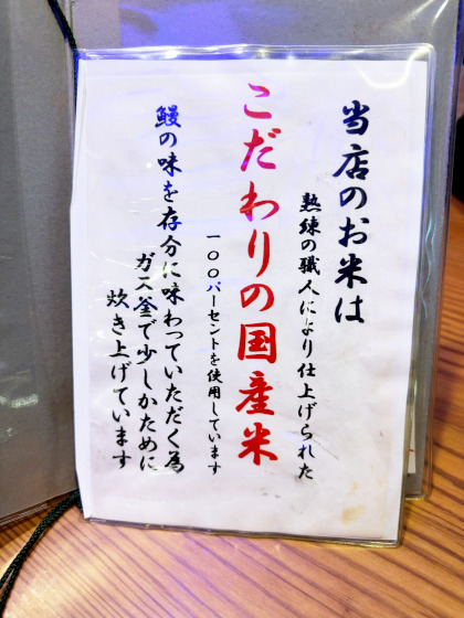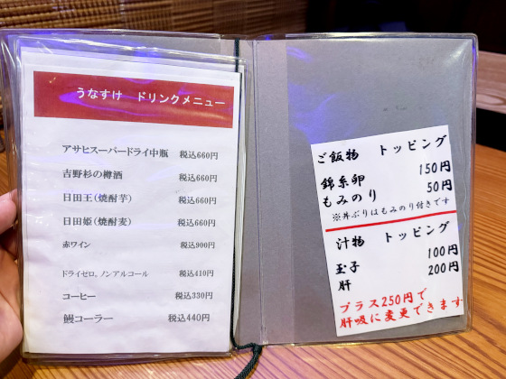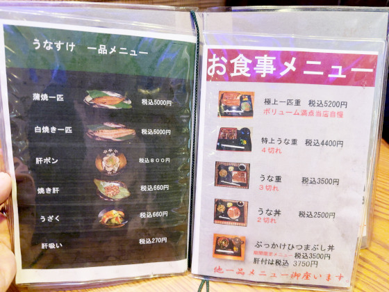 食事メニューはシンプル!鰻のメニューの違いは分量だけだそうです。