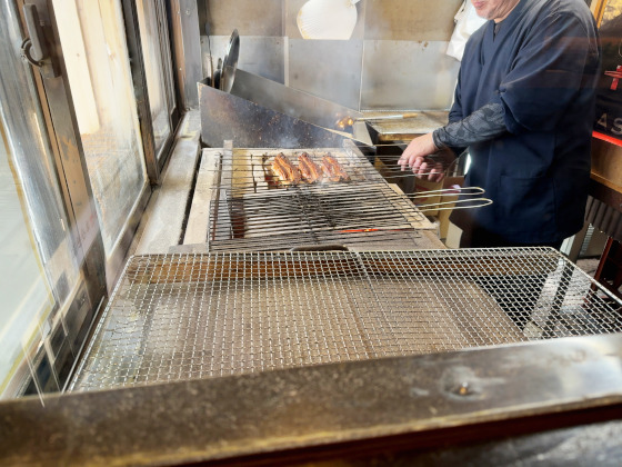 注文を済ませた後は、入り口近くにある焼き場を見せてもらいました。自分が食べる鰻が焼き上がっていく様子を見ると、気持ちが高まります。それにしても炭火で焼かれた良い匂いがたまりません。はやる気持ちを抑えつつ、大人しく席に戻ります