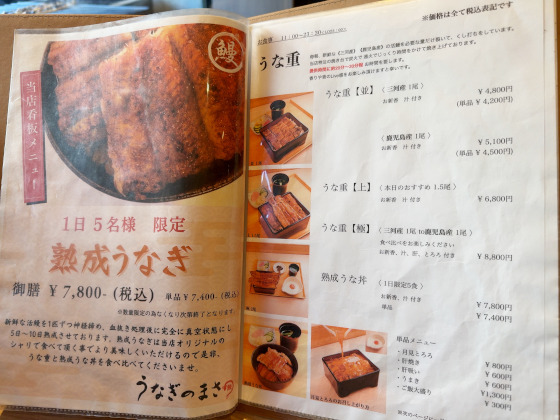 ということで注文。鰻は鹿児島産、三河産から選べるようですが、この日は三河産のみの取り扱いでした。