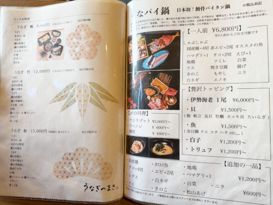 コース料理や鰻の骨の出汁を使った「うなパイ鍋」という珍しいメニューもあり