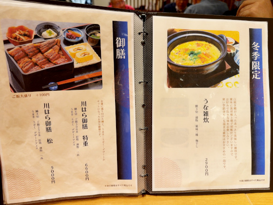 一気呵成に食べ終えて、お茶をすすりながら、他のメニューも眺めてみます。寒い季節には雑炊があり、御膳メニューもあります