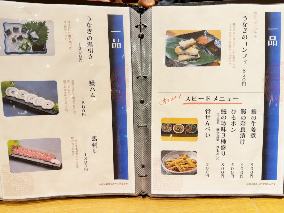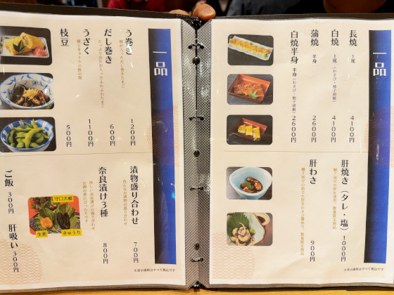 う巻き、うざくといったオーソドックスな一品メニューから、奈良漬け3種などもあり……