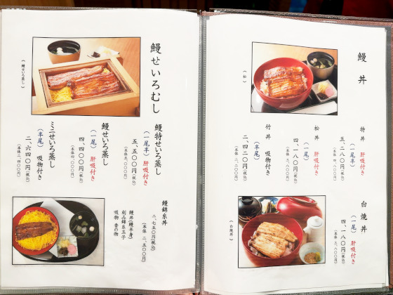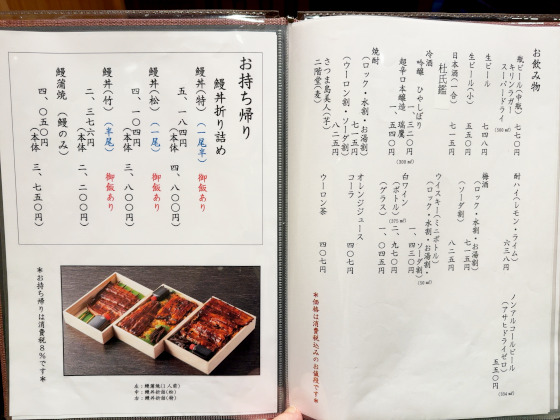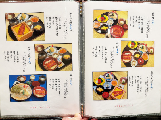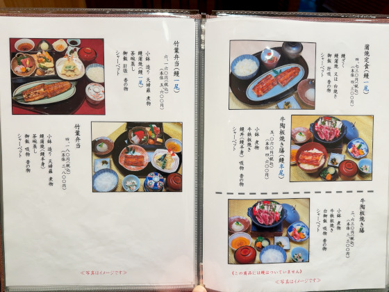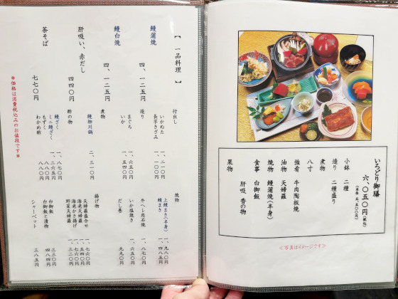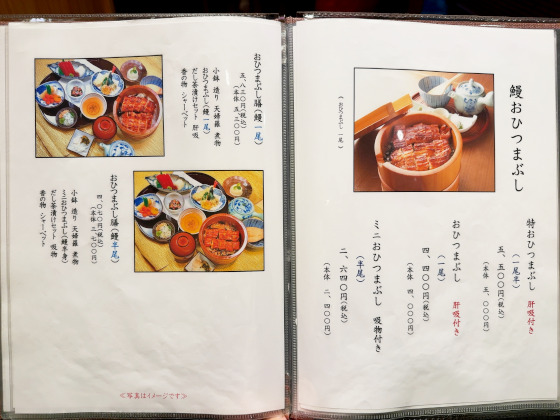 さて、満腹になったのでお茶をすすりながら他のメニューも眺めてみます。ひつまぶしもあります。店内は女性客が多く、ひつまぶしを注文されている人がほとんどでした。
