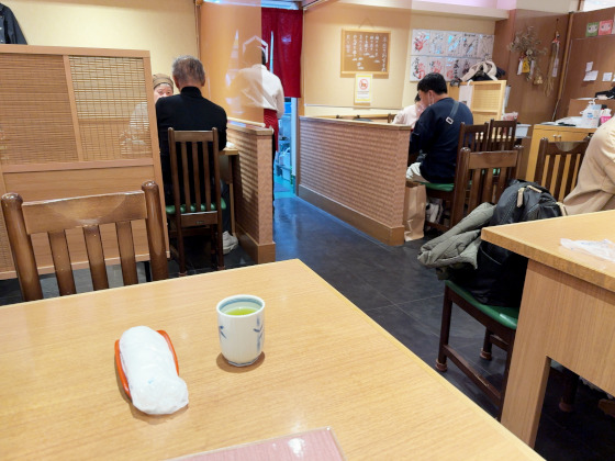 日曜日の13時頃に訪れたところ、ほぼ満員状態。なんとかタイミングよく席に着くことができました。人気のお店で、代わる代わる客が来ています。席はオープンで街のちょっと良い食堂といった感じ。