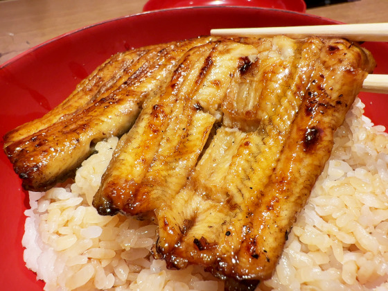 早速いただきます!身はしっかりと蒸されており箸を置くとほろりと身が切れるほどで、ふっくらしています。味は蒸した分脂は落とされてあっさり。タレは関東風の辛口が光るキリっとした風味。関西に出店しながらも関西風に染まらない江戸っ子の味そのままなのがうれしい。ご飯は少しやわらかめ。そしてご飯大盛はこのサイズの鰻1尾ではバランスがおかしくなり、やり過ぎた感があります。ちなみに愛知県産の鰻です。