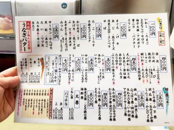 何とか食べきって他のメニューも眺めてみます。こちらは14時までやっているランチメニュー。多くの客がこちらを注文していました。これにうなぎバターを2貫合わせるぐらいがちょうど良いかも。