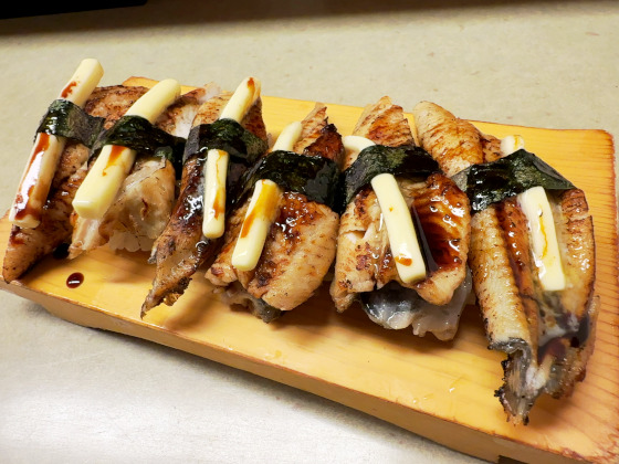 えーい、ままよ!実食!バターは無塩ですがかなり油が濃い。鰻はそこまで脂が感じられませんが、さすがにバターと合わさるとパンチがあります。とにかく油が濃い。脂同士の相性がめちゃくちゃ良いのかは人次第、とにかくインパクトがあることは確かです。海苔が乗っていますが完全に味がかすんでおり、バターを固定する役割に徹しているのみ。それにしても6貫はやり過ぎました。そんな注文している人は他に一人もいませんでした。これは1人2貫で十分、それが常識……年の瀬にやってもうた