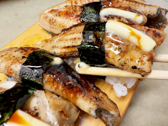 さらに待つこと10分。やっと真打ちの登場!「うなぎバター(2貫 税抜550円)」です。バターはバーナーで炙ってあります