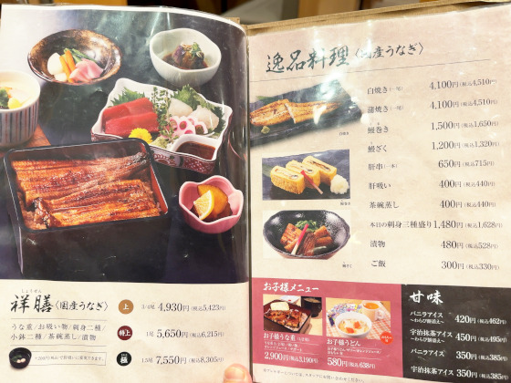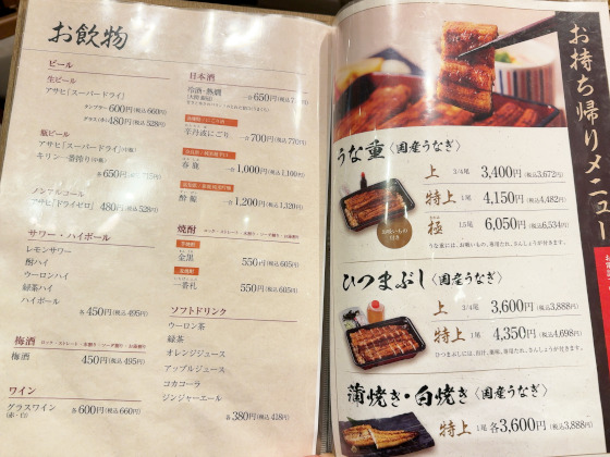 さて、メニュー。鰻は国産のみを使用しているとのこと。