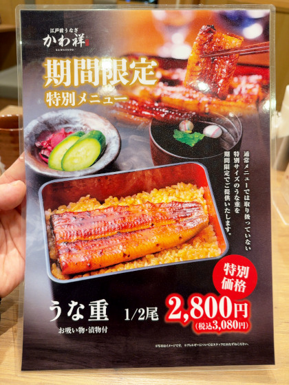 店名:江戸前うなぎ かわ祥 大丸梅田店