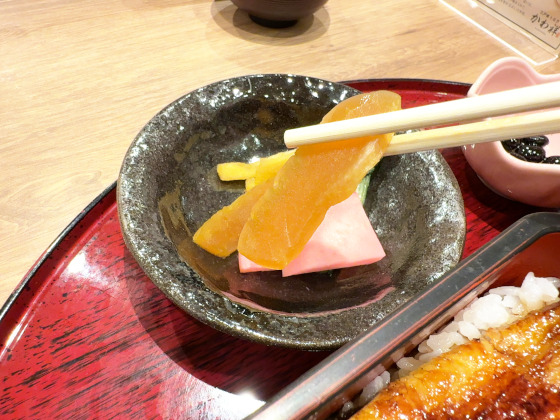 サクッと注文を済ませ待つこと5分ほどで着重!めちゃくちゃ早い。こちらは「うな重 上(税込4,400円)」です。鰻は3/4尾となります。漬け物、小鉢、吸い物がセットで付いてきました。なお、吸い物はプラス200円で肝吸いに変更可能です