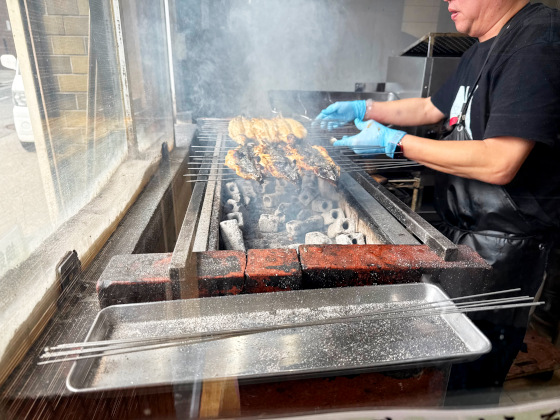 この日は祝日の開店直後に訪れたところ、1番客でした。ということで、入り口近くの席で焼き場を眺められる特等席をゲット!うーん、良い匂いがたまりません