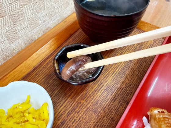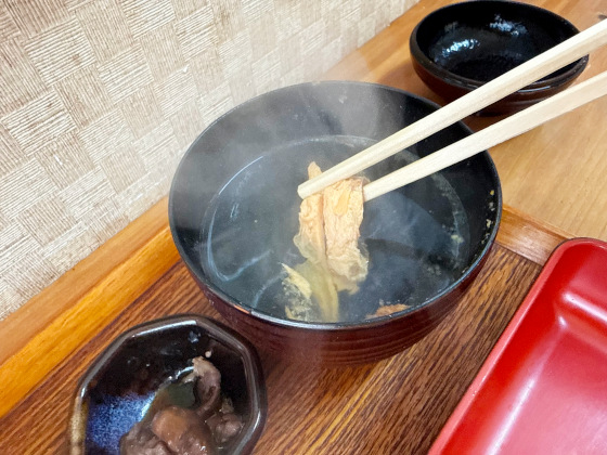 そしてこちらは鰻の骨からだしをとったという吸い物。あっつあつです。食べてみるとカツオの風味が強く感じられ、鰻感はそこまで無いかも