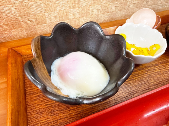 ブランド卵を使用した温泉卵。このままでも十分イケるくらい濃厚。丼タイプならタレのかかったご飯に乗せても良いかも