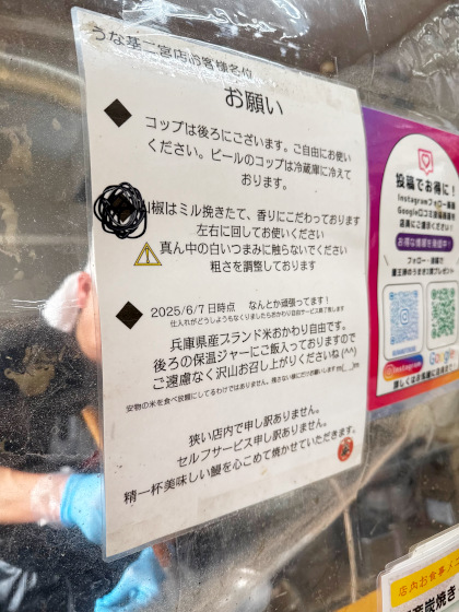 神戸三宮の大丸や北野坂などで店舗を展開する「うな基」。炭焼きの関西風鰻を提供するお店で、その直売所が二宮にあります。繁華街から離れた場所の加工工場内、お茶・ご飯おかわりはセルフサービスにすることで、国産鰻でもリーズナブルに食べられるように工夫がなされています。安いだけではなくタレは鰻の骨からだしをとっているなどこだわりっぷりが半端ないので、実際に訪れてみることにしました。