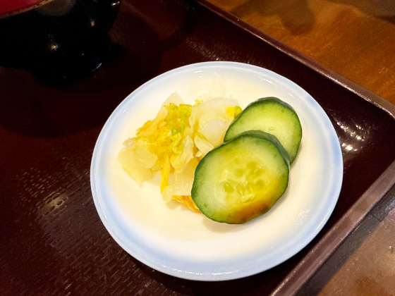 漬け物はきゅうりが糠の風味が残りよく漬かっています。