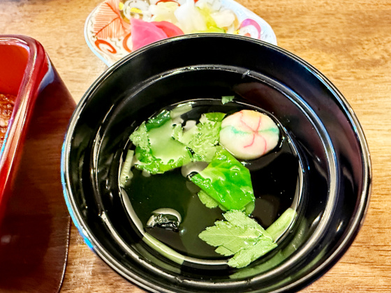 すっきりとした味わいのお吸い物で脂を流します